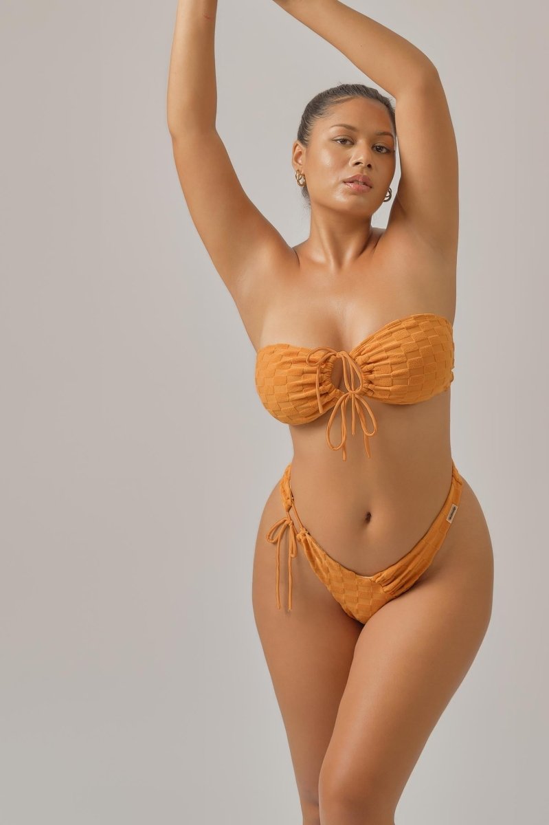 Alana Tie Front Cheeky Bottoms / Toffee Jacquard FINAL SALE